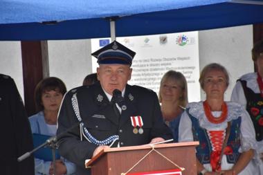 W uroczystości wzięli udział między innymi parlamentarzyści, samorządowcy szczebla wojewódzkiego, powiatowego i gminnego, przedstawiciele PSP w Żywcu, poczty sztandarowe lokalnych jednostek OSP oraz członkowie rodzin strażaków. Powiat Żywiecki reprezentował Starosta Andrzej Kalata.