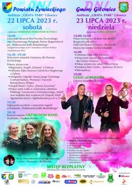 Starosta Żywiecki oraz Wójt Gminy Gilowice serdecznie zapraszają na Dni Powiatu Żywieckiego oraz Dni Gminy Gilowice, które odbędą się w dniach 22-23 lipca 2023 r. na terenie Amfiteatru Grapa-Park” w Gilowicach.