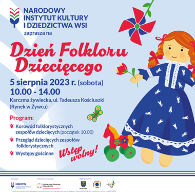Narodowy Instytut Kultury i Dziedzcitwa Wsi, Starostwo Powiatowe w Żywcu oraz Miejskie Centrum Kultury w Żywcu serdecznie zapraszają na Dzień Folkloru Dziecięcego, który odbedzie się w Żywcu w dniu 5 sierpnia br. o godzinie 10.00.
