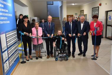 W dniu dzisiejszym (5 października) odbyło się uroczyste uruchomienie windy osobowej przeznaczonej w szczególności dla osób z niepełnosprawnościami. W wydarzeniu wzięli udział między innymi: Poseł RP Kazimierz Matuszny, Starosta Żywiecki Andrzej Kalata, Wiceprzewodniczący Rady Powiatu Władysław Skrzyp, Dyrektor Oświaty i Wychowania Andrzej Widzyk, Kierownik Biura Rozwoju, Funduszy Zewnętrznych i Inwestycji Stanisław Baczyński, Dyrektor ZSOiT Marta Żółty, Dyrektor Poradni Psychologiczno-Pedagogicznej Dorota Omyła.