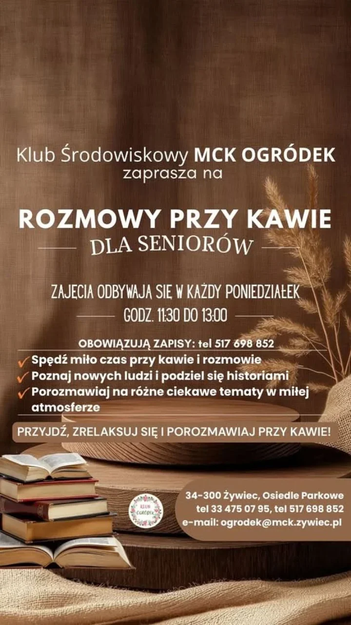 W sercu Żywca powstała spokojna przestrzeń dla tych, którzy szukają towarzystwa i rozmowy przy filiżance kawy. W każdy poniedziałek Klub Środowiskowy MCK „Ogródek” otwiera drzwi dla seniorów, oferując chwilę relaksu i wymianę historii w kameralnej atmosferze. To propozycja dla osób, które chcą poznać sąsiadów i spędzić poranek bez pośpiechu.