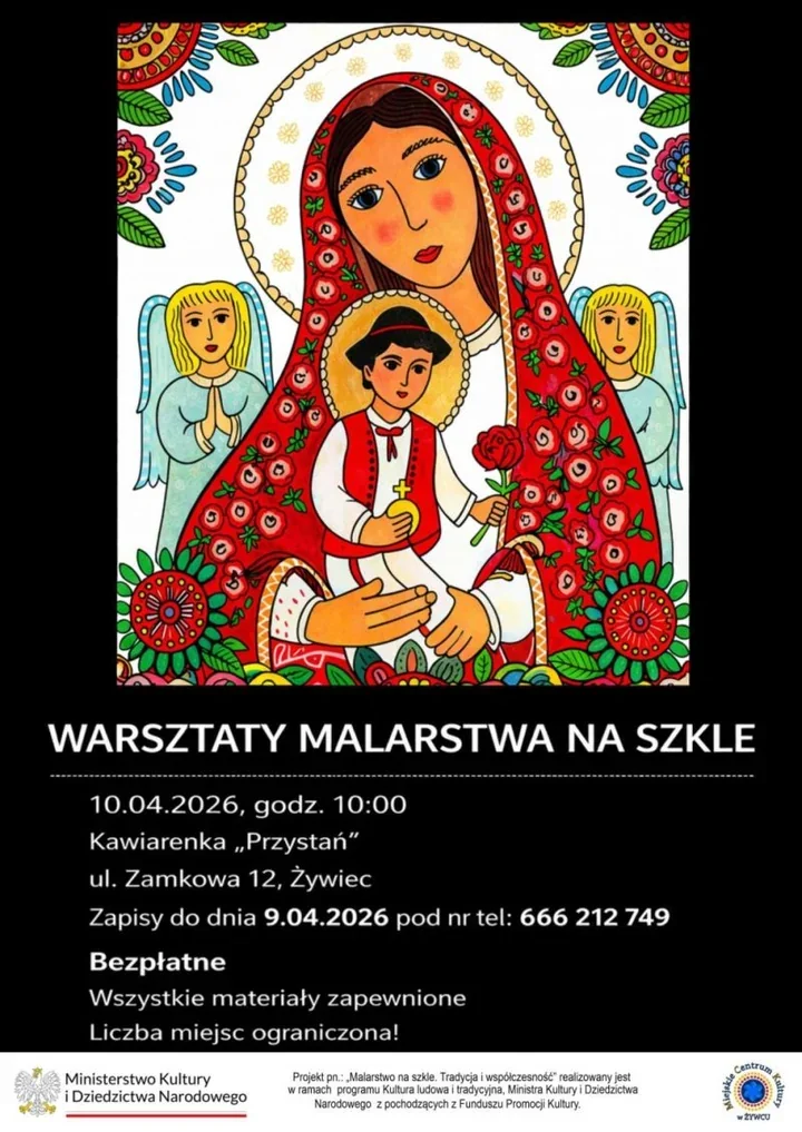 W Żywcu szykują się dwa poranki z malarstwem na szkle, a potem także przestrzeń dla twórców z całej Polski. Zajęcia są bezpłatne, organizatorzy zapewniają materiały, a liczba miejsc jest ograniczona, więc decyzję trzeba podjąć szybko. To propozycja zarówno dla osób, które dopiero chcą spróbować tej techniki, jak i dla tych, którzy szukają sposobu, by rozwinąć własny warsztat.