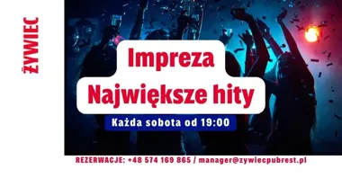 Przygotujcie się na wieczór pełen tańca i przebojów, które znacie na pamięć — od syntezatorów lat 80., przez dyskotekowe hity 90., aż po energetyczne kawałki z lat 2000. Za konsoletą stanie DJ Patryk, który ma zadbać o nieustające tempo na parkiecie. Wpadnijcie w sobotę i poczujcie klimat, który rozkręca się od pierwszych taktów!